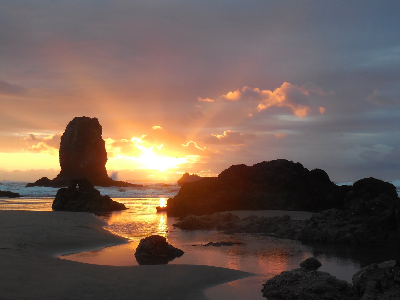 Cold but beautifulMy role as staff for Haystack Rock job starts and this year I'm getting paid for what I did for free last year. That fulfills one of my intentions: to get paid for work I would do (and have done) for free :) Since that job revolves around low-tide, there's no normality to be found there. The tide waits for no man, so all other schedules have to dance around this one. No sense of balance there... But being paid to be on the beach, talking to people about the wildlife is pretty fine. However, the first session of beach duty was a little raw: 45 mph winds, cold and rough surf.