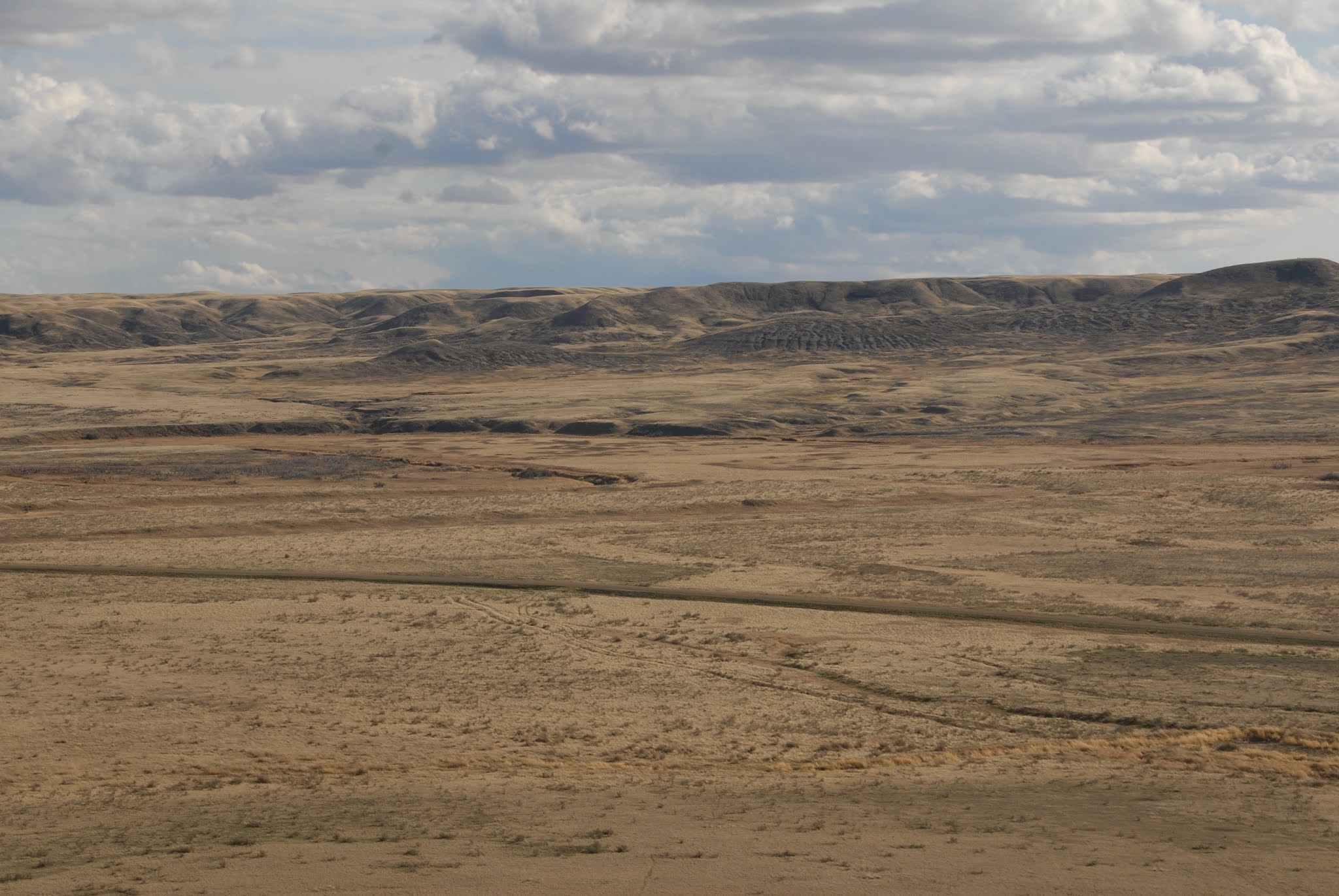 From Alex Emond: This truck was parked in a fenced , private lot so I just took this shot . Just east of Medicine Hat, Alberta. The wheels make me assume that there's more going on than I can see. Mighty fine .... here's some Saskatchewan landscape ... down in the Grasslands .