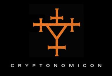 The name is derived from H.P. Lovecraft's Necronomicon, a fictitious book that has been referenced numerous times in western literature and pop culture. The name is indicative of the book's main theme, cryptology, as well as the unofficial manual used by cryptologists during and after World War II. In addition to featuring fictionalized versions of real events, it is also chock-full of fictionalized personalities drawn from history. They include Alan Turing, Albert Einstein, Douglas MacArthur, Winston Churchill, Isoroku Yamamoto, Karl Dönitz, and Ronald Reagan, as well as some highly technical and detailed descriptions of modern cryptography and information security, with discussions of prime numbers, modular arithmetic, and Van Eck phreaking.