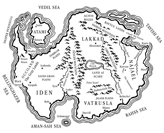 “The Shapers can reach me in my dreams. I escaped their clutches once, but in the blackness of sleep they tear open the walls of my head and slither inside. In each nightmare they glare down on me as they once glared down on all the land, from the edge of the eastern desert to the dwindling tip of the western peninsula. As they once glared down on my father, bound across his own workbench for their tortures. Even though their eyes are drowned within the dark slits of their masks, I can feel their stares. The robes hiding their bodies flutter around me in a barrier. There is nothing beyond.” — the teenage heroine BeldeAbandon all Sorrow, all ye who enter here!