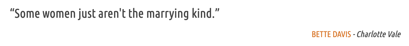 Now, Voyager had a hard row to hoe winning me over, since a central tenant of the story is the love between a married man and a woman who is not his wife. We're meant to sympathize with the man who made a bad match and is now "trapped" in a loveless marriage (though we never see that wife or marriage for ourselves). To his credit, he was never dishonest about the fact that he was married and had no intentions of abandoning his family and starting anew with our heroine.