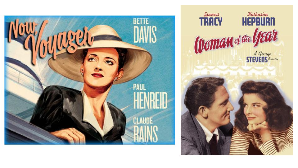 Coincidentally, I picked two movies that premiered in 1942 for my watching this week: Now, Voyager with Bette Davis and Woman of the Year with Katherine Hepburn. Both are striking for their exploration of roles of women, and both left me frustrated by not quite being willing to go all the way.