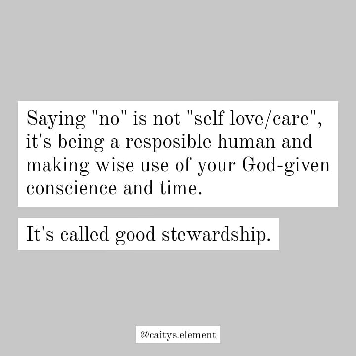 Saying "no" when your plate is overflowing and you're getting burnt out is not "self care", but is also being a responsible human and using your God-given time wisely.