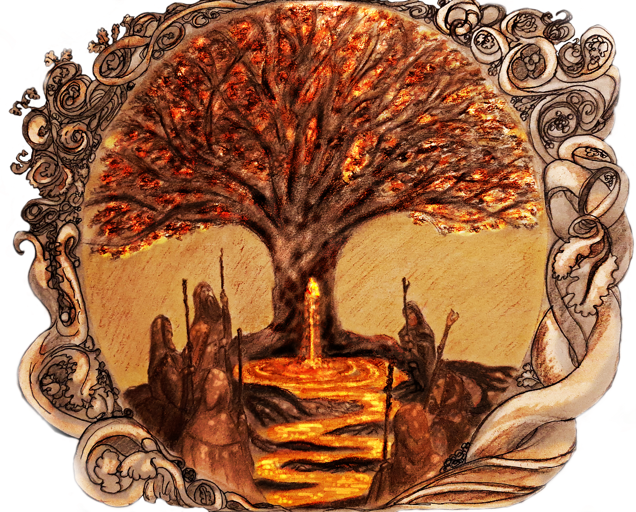 —Exactamente. El gran concilio al final de la era conocida como de la Indecisión, marcó la división entre los druidas: los fieles, que creen en lo revelado bajo el Árbol, y que el mundo todo obedece a una armonía que hay que restaurar, y los fenóritos, que se revelaron contra el Creador, que creen que o no existe o se trata de un embustero, y en su lugar sirven a fuerzas… contrarias a Él. Son posturas inconciliables dentro de la batalla que se desata en nuestras almas: la lucha por ordenar nuestro interior, y luego el mundo, de acuerdo con la gran canción del todo, o el intento de seguir solo la propia voluntad, abrazando el ruido y renunciando a la armonía interior y exterior como cosa costosa e inútil.