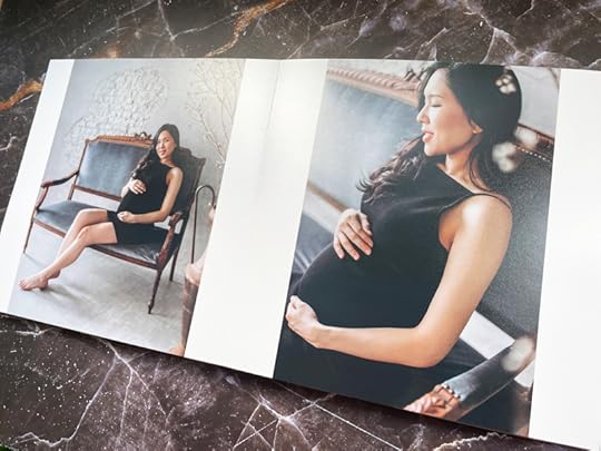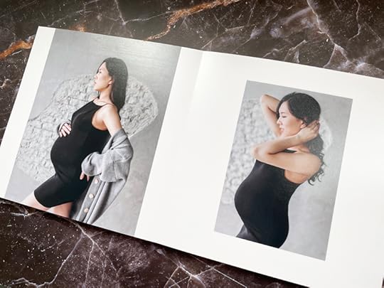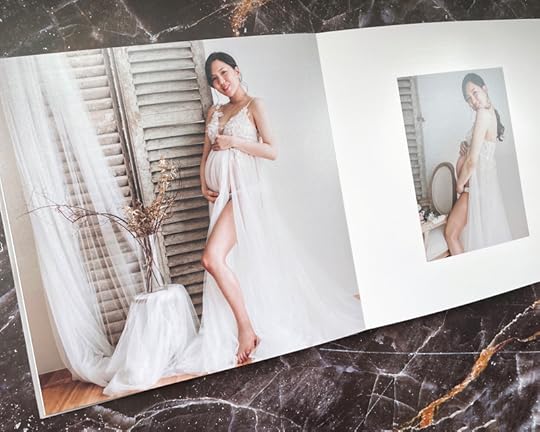 現在的相片大都數位化,非必要不會洗出來,但有時能實體拿在手上翻閱,感覺還是不太一樣,而我向來就愛動手設計,之前自製過婚紗相本,這次的孕期寫真也做成跟婚紗同系列的相本。想要的排版風格類似攝影集,沒有太多華麗的編排圖框或文字敘述與標題,以好好呈現照片為主,所以選擇30×30公分的尺寸,拿在手上沈甸甸的頗大一本。