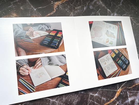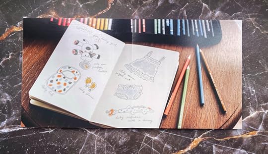 拍攝前討論時,攝影師提議可以加入一些繪畫的元素,以呼應我的職業,於是當天就準備了一些小插畫,帶上色鉛筆跟Moleskine筆記本,除了當道具以外,也現場隨性地速寫了一下捧花,挺好玩的。