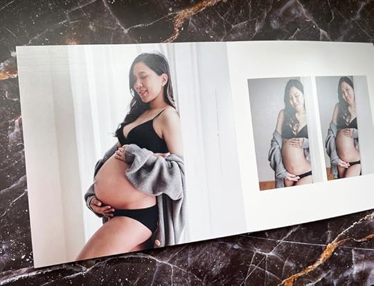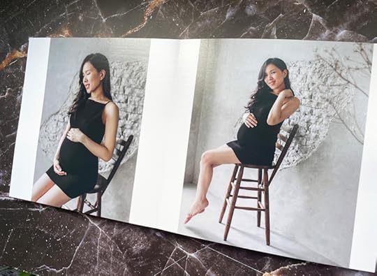 孕期寫真一般也會準備一些道具,基本常見的譬如超音波照跟寶寶小物,我另外也帶了自己設計的媽媽手冊跟創作的繪本。