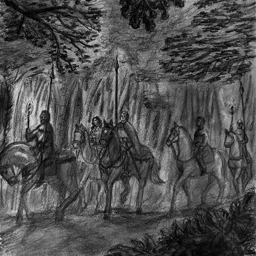 El acompasado ritmo de los cascos era sepultado por la vida que estallaba a su alrededor: la lluvia que regó la tierra la noche anterior había cesado ya, y en su lugar el concierto de las aves llenaba el aire limpio de la mañana. Era un día espléndido para un paseo, aunque las brillantes lanzas eran un recordatorio permanente de que no se internaban en la naturaleza para gozar de su contemplación.