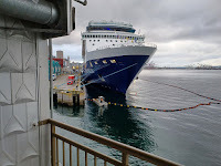 And the next morning there was a NEW cruise ship parked outside our window, but we breakfasted, stopped for the groceries at Pike Place (also seriously masked up, but crowded) for smoked salmon, crab, and bread.