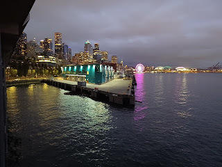 The first night out we walked to Ohana, a favorite sushi spot in Belltown (an area north of downtown Seattle, which they are trying to rebrand as "Uptown"). Walking was the exercise of the weekend, even though it meant challenging a particularly steep hill on Wall Street. The food was great, the drinks were strong, and we ended up getting back to the hotel in time to watch the sun drop down in a cloudy sky.