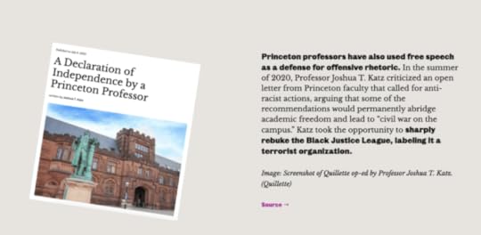 Well, they’ve been dragging out Prof. Katz’s immiseration for over a year now. Incredibly, the university uses him as an example of racism on an official Princeton website dedicated to educating incoming students about the history of racism at Princeton. I repeat: this is an official university website. Here are the Katz parts: