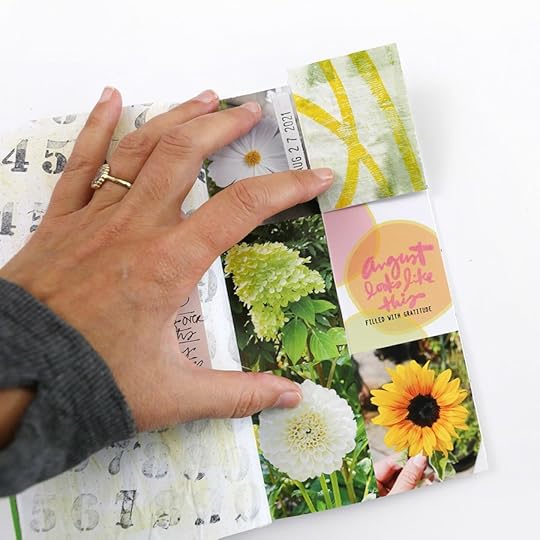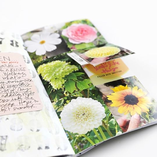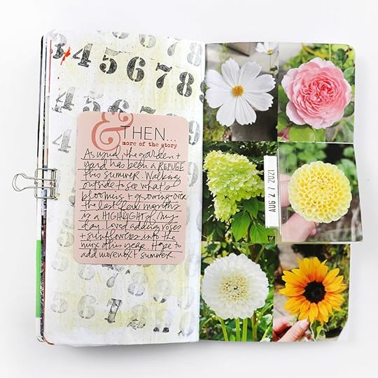 For this week's Craft The Story video I'm sharing another spread in my Stories Of Summer notebook this time adding in a photo collage of some of the flowers in my yard and cutting up that collage to create a flip up element.