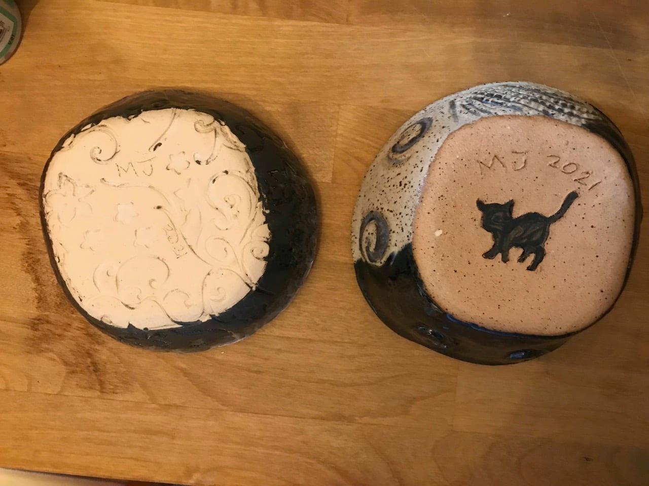 They made these bowls for their cousins who live in a house in Hamilton Park. Then they left the bowls behind their cousin's planter outside a window.