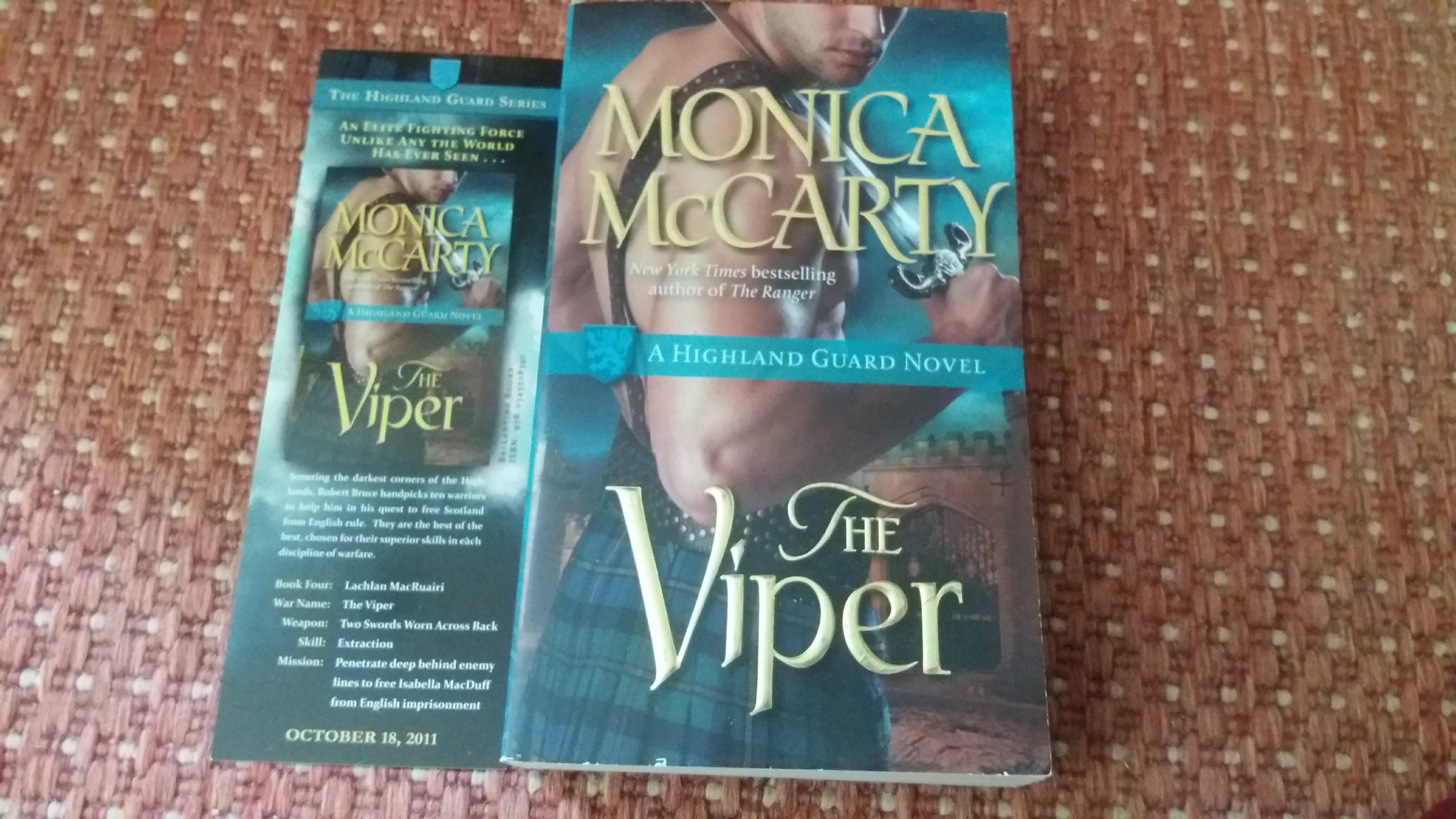 This is the story about how I fell in love with the Highland Guard series! I became a member of Goodreads back in 2012 and I remember when I saw the Highland Guard series by Monica McCarty. I thought that the covers looked awesome. I knew I had to put them in my to read pile. In March 2014 I finally started to read the Viper (I totally read this series out of order). It was a special moment. I thought:"Wow! What a great story. I'm thankful and happy that I get to read this." A few months later I read the Raider. I loved that book too. 💙💜⚔️🏴📚Don't ask me who my favorite warrior is because it is hard to choose one when I love them all. But if I was forced I would actually choose two and it is Lachlan "Viper" and Erik "Hawk." 🥰😍Lachlan is the dark haired and green eyed bad boy. He is like a Viper so the nickname fit him. Erik is the blond and blue eyed half Viking/half Highlander that love jokes. It is actually Erik that come up with the nicknames for the members in the Highland Guards. ⚔️