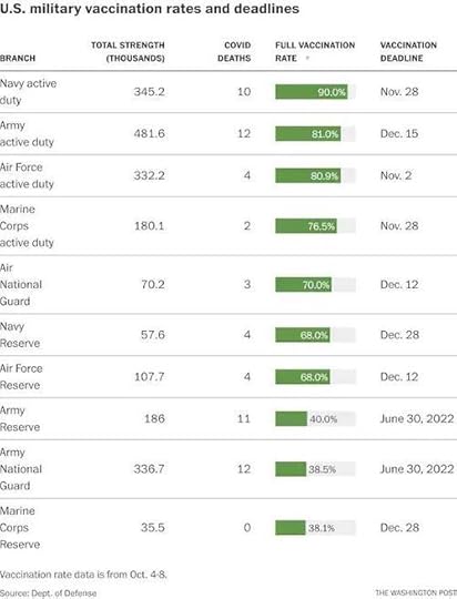 Among the Army Guard and Reserve – which have until June 2022 to come into compliance, under 40% are fully vaccinated.