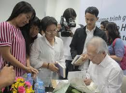 GS Cao Huy Thuần ký tặng sách cho độc giả.