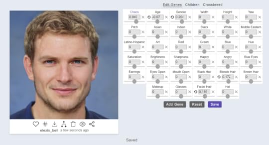 Since I’m pretty happy with my turnout, I’m going to move to Edit-Genes, but you feel free to move those little slider bars to your heart’s content. Just be sure to click Save (below the slider bars) if you like the image on the left (so it doesn’t disappear). Once saved, it’ll show up at the bottom, as well as on your profile under “Created” so you can come back to it later.