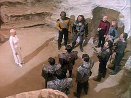 After retracing his footsteps, Picard and the Enterprise are joined by three other search parties – one Klingon, one Romulan and one Cardassian – in orbit around a dead planet. When they reach the surface, they find that all the clues lead to a recording left behind by an ancient species. In the recording, the humanoid alien tells them all that they are the progenitors of every sentient race in the quadrant, that their DNA was planted on countless worlds. This is apparently why so many species are humanoid, and means that humanity shares ancestry with all these would-be enemies.