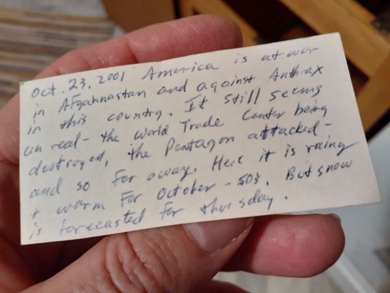 Not exactly sure why I put this hand-written card there all those years ago. We moved into the house in 1990, so you would think that if I was going to plant a memory, it would have been then. Who knows. But I think it’s kind of cool. Maybe that’s why I put it there.
