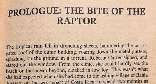 “The tropical rain fell in drenching sheets, hammering the corrugated roof of the clinic building, roaring down the metal gutters, splashing on the ground in a torrent.”