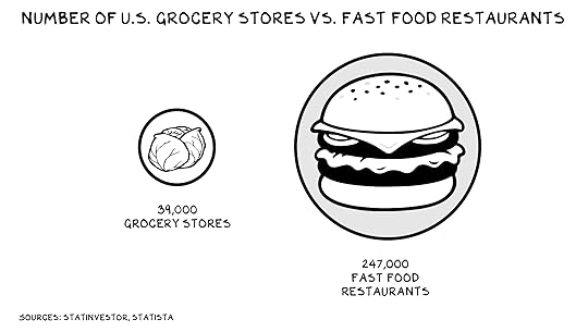 Unlocking widespread grocery delivery will do more than save us trips and gasoline. It could improve the diets of the 19 million Americans who live in food deserts (places where the nearest grocery store is more than a mile away). Obesity rates are high in these areas, where fast food restaurants are cheap and ubiquitous. There are roughly 39,000 grocery stores in the U.S. vs. 247,000 fast food restaurants. But there are 300 million smartphones.