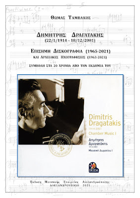 Παρουσίαση του βιβλίου του Θωμά Ταμβάκου Δημήτρης Δραγατάκης.Επίσημη δισκογραφία και αρχειακές ηχογραφήσεις (έκδοση της Μουσικής Εταιρείας Αλεξανδρούπολης, 2021)