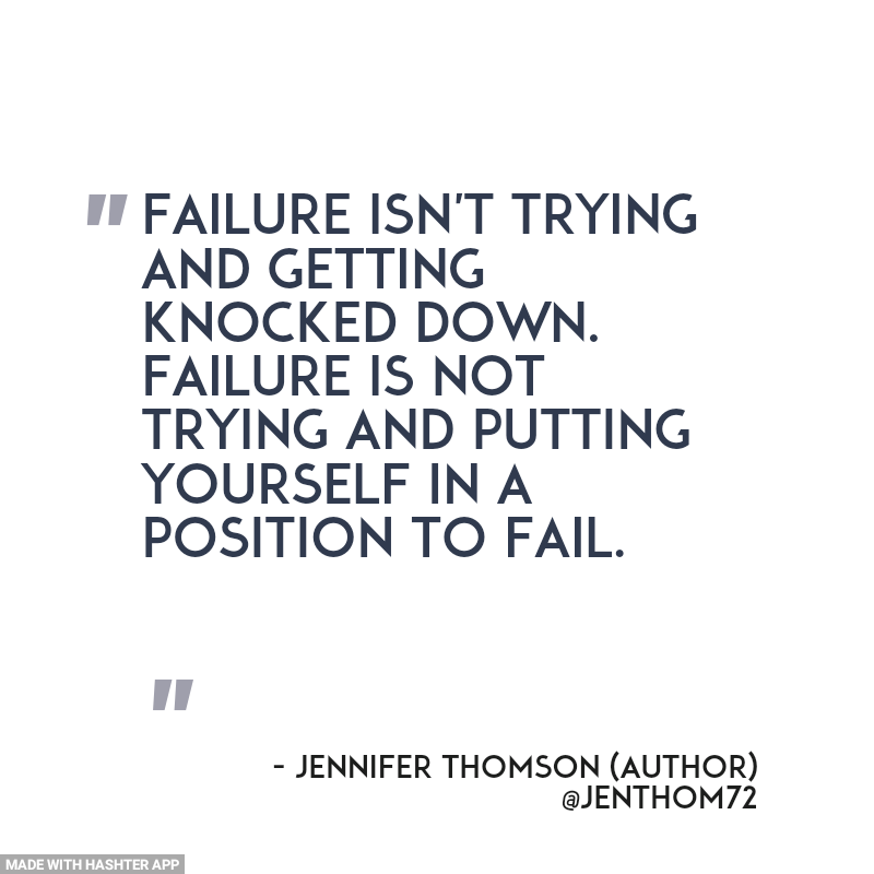 Besides, failure isn't trying and getting knocked down. Failure is not trying and putting yourself in a position to fail.