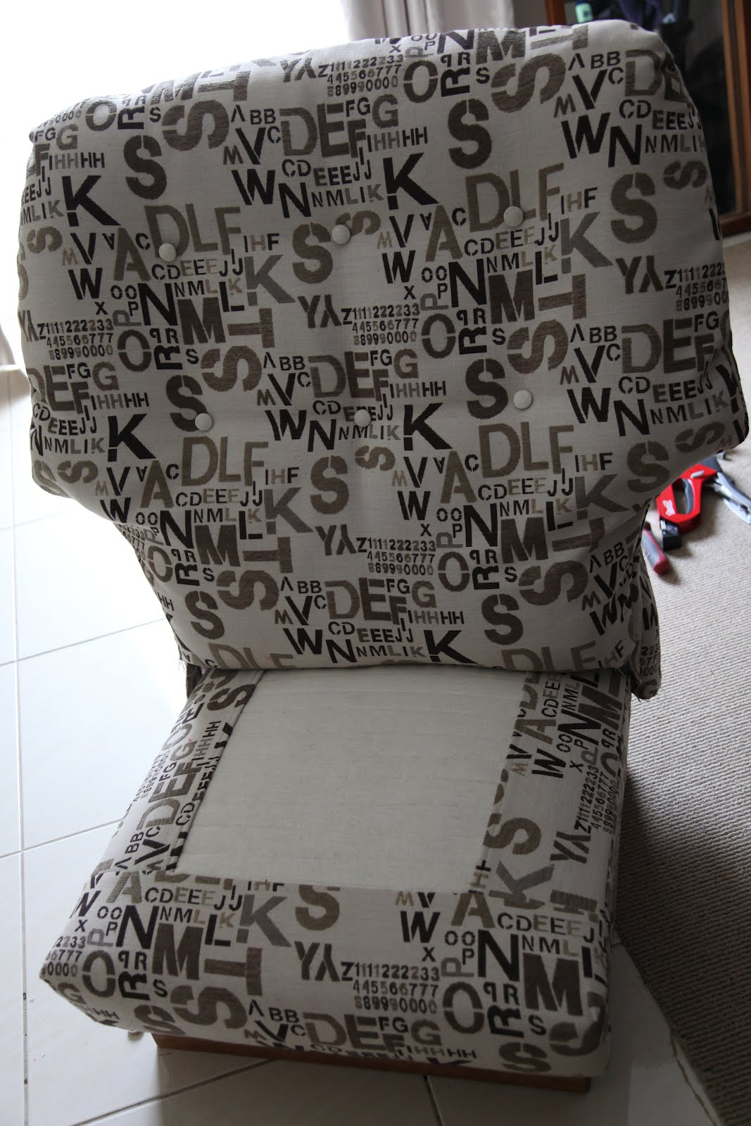 I have already finished one lovely shiny project early this year: The Chair. Those of you with exceptional memories may remember that I mentioned DH & I were reupholstering our old lounge. Well, we did it, and here is the shinyfish result (well, nearly; I apparently don't have a pic of it TOTALLY finished, which is sad, because OBVIOUSLY it looks better with arms and a seat cushion):