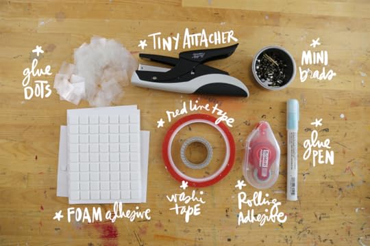 Scotch Rolling Adhesive Scotch Rolling Adhesive Refills Foam Adhesive Dots Red Line Tape Glue Dots Tiny Attacher Glue Pen (similar to what I shared) Mini Brads March Stories By The Month Kit Paper Piercer/Craft Pick Washi Tape