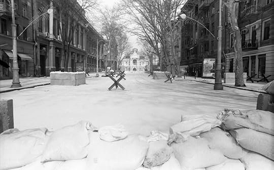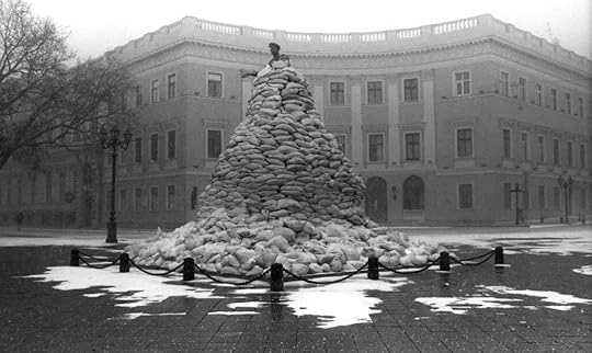 The strangeness is everywhere: barricades made of sandbags and concrete blocks at almost every intersection, volunteers distributing bread and sausages. There is strangeness, too, in the snow that has been falling for three days—frost in Odesa, a vacation town, in March!—and in the courage of my neighbor, an eighty-year-old woman who survived Hitler’s war, who every evening says: “You need to have a good wash and put on new clothes, so that if they bomb you, you will be clean …”