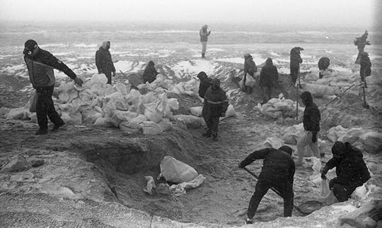 People gathering sand into bags for fortifications. Photograph by Anna Golubovsky.