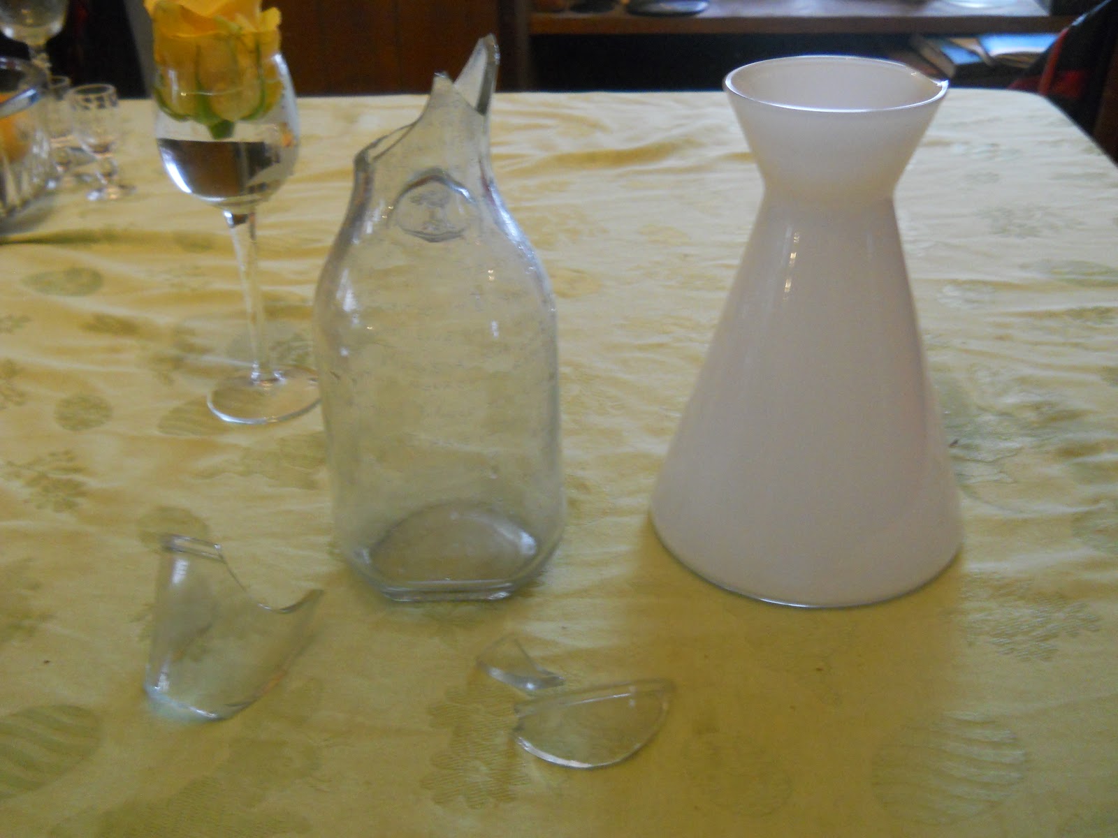 Alas, many long years ago, a decade at least, I dropped and broke the carafe. But I saved the pieces thinking that maybe someday I'd replicate it. It took me forever to get around to that particular chore because it's always easier to create something new than something old. But today I happened to be in Ikea, saw a carafe, and decided it was time.