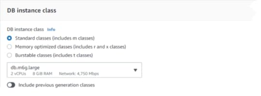 The first of these is after you create the database instance identifier and have provided the master user information and is entitled DB instance class. There are three options available for instances: