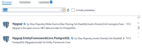 Figure 1. NuGet packages required to connect to PostgreSQL