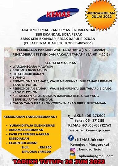 Maklumat Lanjut:Untuk maklumat lanjut, sila layari laman sesawang portal KEMAS atau hubungi di talian 05-3712102 (KAMPUS) atau 03-8891 2763 (IBUPEJABAT KEMAS).