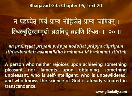 05.20: A person who neither rejoices upon achieving something pleasant nor laments upon obtaining something unpleasant, who is self-intelligent, who is unbewildered, and who knows the science of God is already situated in transcendence.