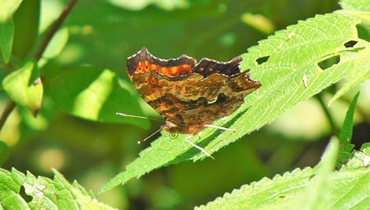 This Eastern Comma butterfly was found alongthe DeLaurier Trail. Eastern Commasare not cooperative when it comes to being photographed. But I managed to sneakup on this one. It posed perfectly to display the dead leaf pattern on the outerwing and just a hint of the profusion of colour on the inner side. Do you seewhy this species is called “Comma Butterflies”?