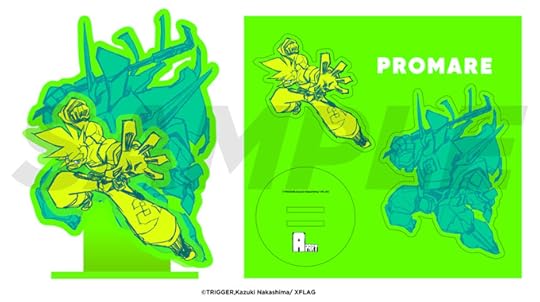 Commemorating the 3rd anniversary of the movie “PROMARE”, of the Frontispiece Illustration drawn by Hiroyuki Imaishi for a “PROMARE” Storyboard Collection (PROMARE HYPER FIRE STORYBOARD BOOK), a special acrylic stand with the character (front) and the mecha (back) printed in custom acrylic (lime green, thick) finish.
