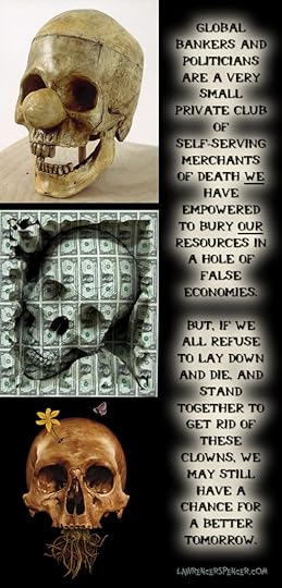 GLOBAL BANKERS AND POLITICIANS ARE A VERY SMALL PRIVATE CLUB OF SELF-SERVING MERCHANTS OF DEATH WE HAVE EMPOWERED TO BURY OUR RESOURCES IN A HOLE OF FALSE ECONOMIES.