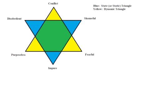 On the other hand, three feel to me more dynamic, or at least more chaotic. These are Fear/Power where one is in the emotionally chaotic state of fear, Dissonance/Harmony where one is in the relationally chaotic state of conflict, and Emptiness/Fulfillment where one is in the volitionally chaotic state of purposelessness.