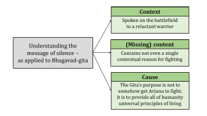 Let’s apply this three-step approach to the Bhagavad-gita and explore the message it conveys through silence: