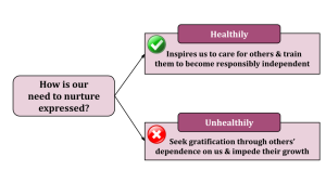 How is our need to nurture a noble need?How can this need be distorted?How does the Gita model a healthy nurturing relationship?