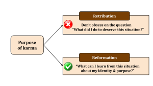 The purpose of karma is not retribution, but reformation – when facing adversities, ask not, “What did I do to deserve this situation?”; ask, “What can I learn from this situation about my identity and purpose?”