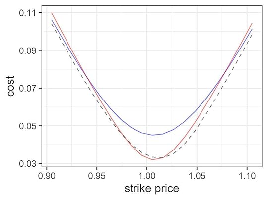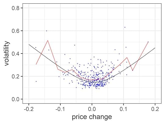 Now, the volatility smile usually refers to the volatility that is implied by the price paid for options, so you could argue that it is based on traders’ subjective projections about the future, and is just a figment of their imagination.