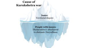 But the Pandavas’ conciliatory overtures bore no fruit because Dhritarashtra was blindly attached to Duryodhana, who was incorrigibly impudent and irrationally intransigent. While a father’s attachment to his son is understandable, Dhritarashtra had let his attachment grow like a cancer that destroyed his sense of duty, fairness, rationality and even basic survival instinct. Being paralyzed by attachment, he let an intra-family conflict snowball into a world war.