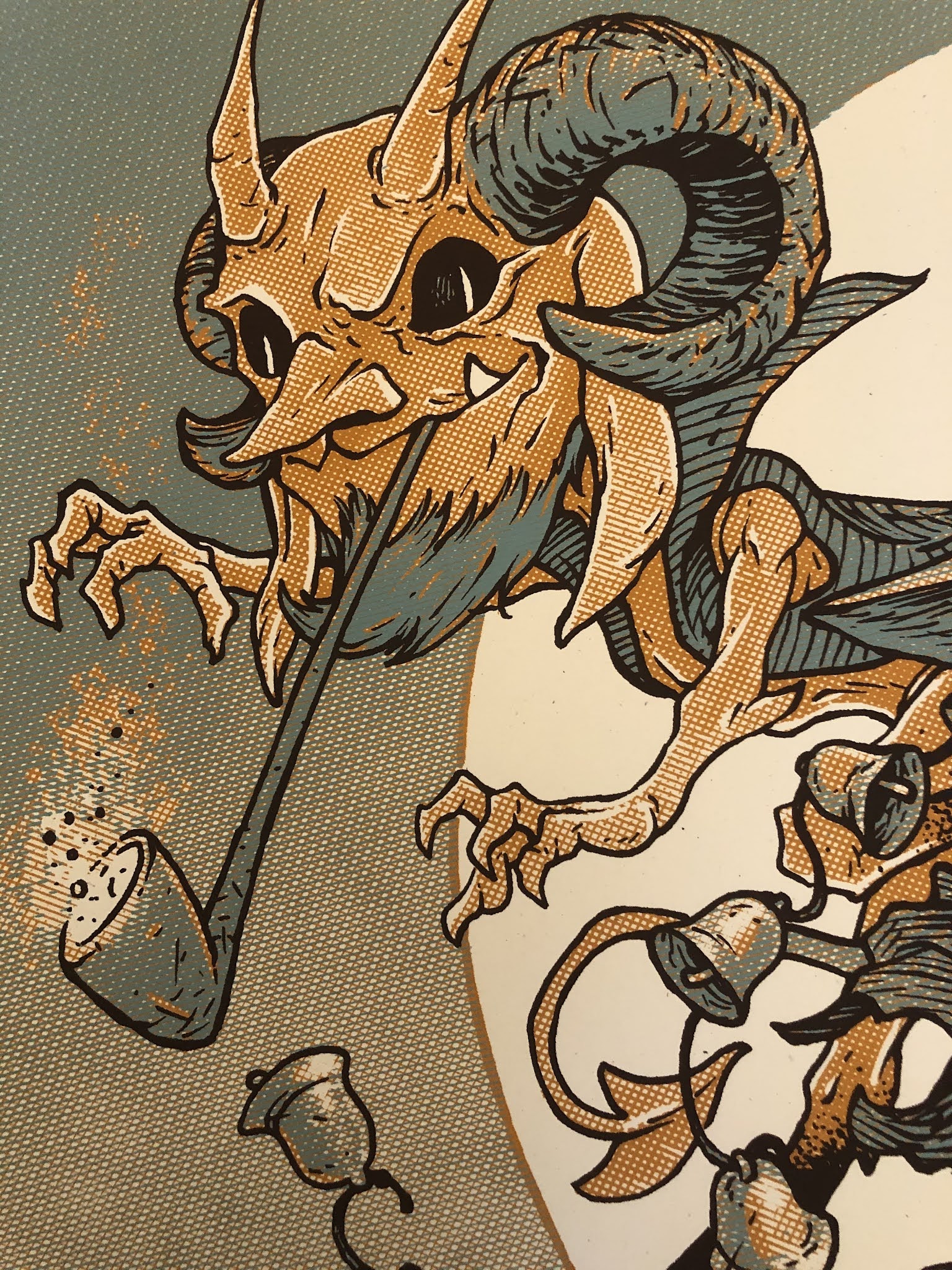 Last year around this time I created a Halloween themed piece for the Baltimore Yearbook, and since it didn't have any copyrighted characters, and I really liked the piece, I decided to also offer it as a 18" x 24" silkscreened poster. In this blogpost I'm going to go through some of the process of going from full-color art to a 3 color piece suitable for silkscreening. If you want to go back to the original post to see the though & art process behind the composition iteself, click here: