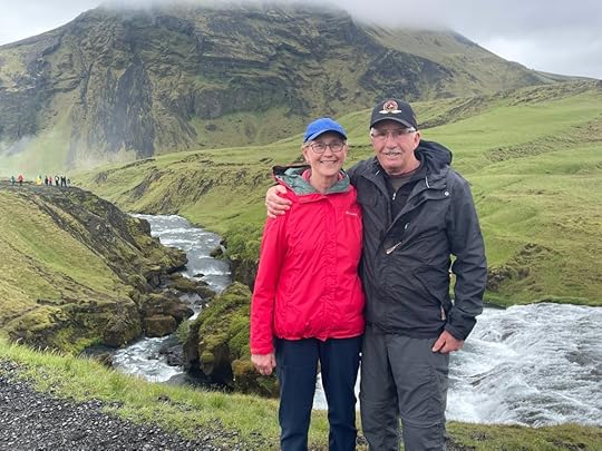 One of the many waterfalls in Iceland.An ancient traditional Icelandic house.[image error]Hubby and I enjoying one of Iceland’s many waterfalls.