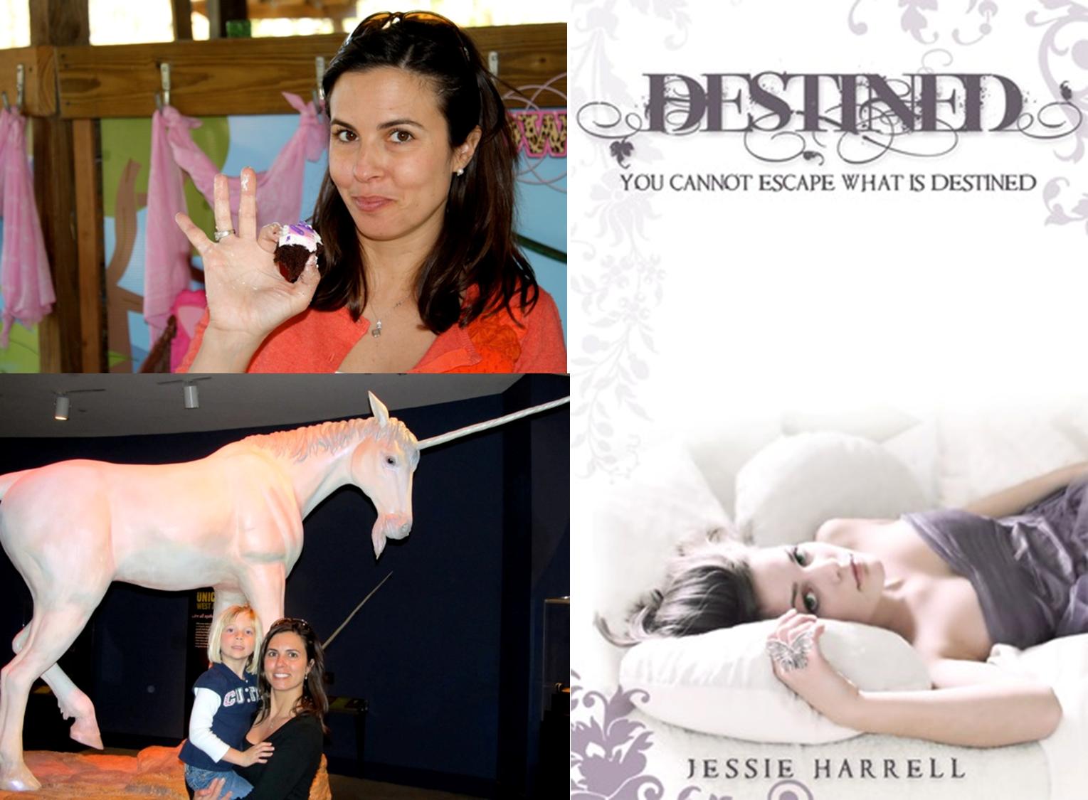 So today I have with me Jessie Harrell, the author of the beloved Destined I've seen all over everyone's GoodReads shelves. I always ask my interviewees to offer up a different kind of pic and Jessie certainly delivered! Love the unicorn! What she said: "Here's a picture of me and my youngest daughter, Samantha, at the Fern Bank Museum in Atlanta. I've always LOVED unicorns. And if you want to get really candid, here's me about to shove cupcake in my mouth after serving them up at my oldest daughter's birthday party. As you can see, I obvious believe my sunglasses are a superior form of hair clip."