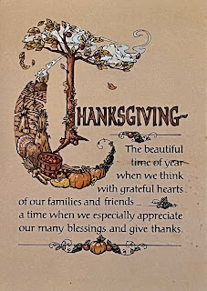 My first cousin, Mona Armijo-Ebeling, wrote me a cute Thanksgiving card:
