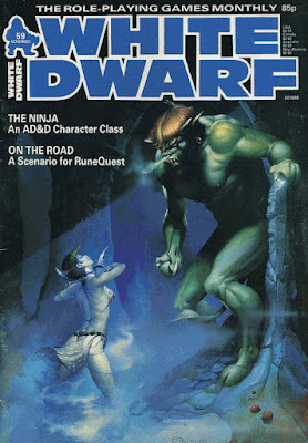 This is a very good issue, filled with lots of variety, in addition to old favorites like "Thrud the Barbarian," "Gobbledigook," and "The Travellers." To my mind, this is peak White Dwarf and is what I think of when I think of the magazine in its heyday.
